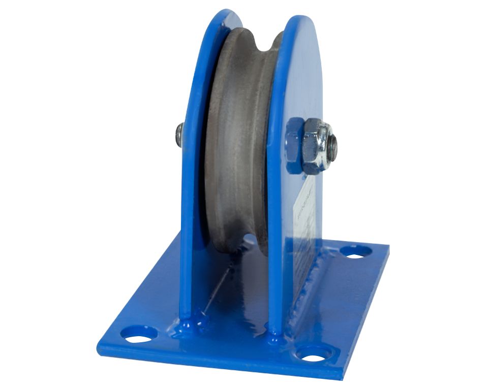 Блок монтажный опорный PB50_PH (PB_platform_high quality), г/п 500 кг, Диаметр шкива 85 мм, Диаметр каната 7-11 мм, Вес 2 кг. Опорный монтажный блок Euro-Lift P широко применяется для монтажных и такелажных работ. Предназначен для применения в качестве отводного и подвесного блоков, для составления полиспастов, комплектования механизмов с электрическим и ручным приводом. Основание - опорная площадка при помощи которой он крепится на опору. Оснащен 1 роликом.