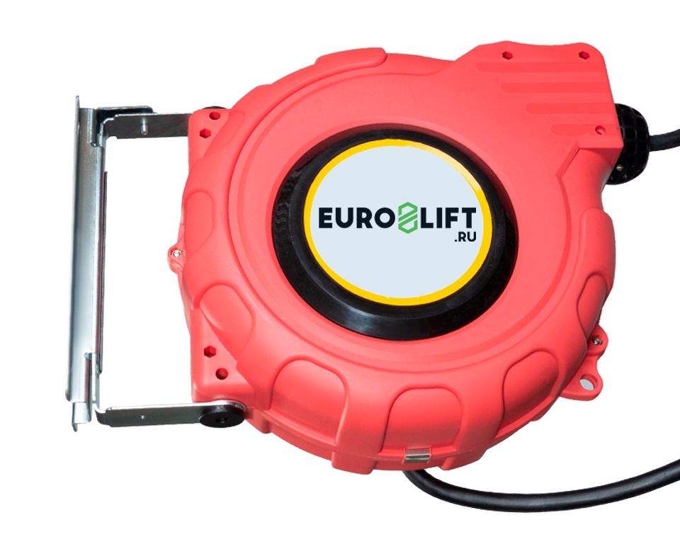Кабельный барабан модели 315J (кабель: 4х2,5мм; 5м; резина) Кабельный барабан EURO-LIFT укомплектован можно установить на потолок, на стену или балку. Для удобства разматывания и сматывания кабеля предусмотрен автоматический запорный механизм намотки. Изделие выполнено из высококачественных прочных материалов. Корпус барабана перемещается относительно держателя на 180°.