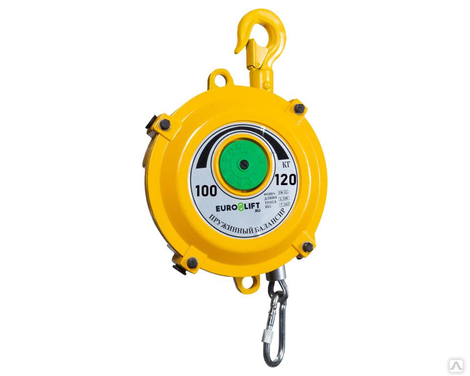 Пружинный балансир (нагрузка 100-120 кг; длин троса 1,5м; вес 17 кг) Пружинный балансир EURO-LIFT нагрузка 100-120 кг, длина троса 1,5м, вес 17 кг используется в ремонтных и производственных мастерских для подвешивания различного инструмента, осветительных приборов, а также других грузов. Предусмотрено изменение высоты подвеса в ходе работы без лишних физических усилий. При выборе модели необходимо учитывать вес балансира, который добавляется к массе груза. Следует выбирать модель с большей нагрузкой, если общий вес равен максимально допустимому.