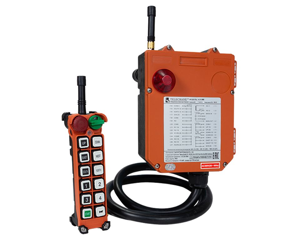 Радиоуправление "Telecrane" А25-10D, комплект (Пульт 10 кнопок, 2 скорости + Приемник) (Питание приемника: 220/380 В) с функцией звукового сигнала Наличие голографических наклеек подтверждающих подлинность товара. Товар укомплектован оригинальным паспортом на русском языке с печатью. Поставка и использование только с соблюдением разрешенных радиочастот в РФ. Шильды-стикеры на русском языке. Дистанция управления до 100 метров. Низкая цена для оснащения радиоуправлением электрических лебедок, цепных и канатных электроталей, а также кран-балок. Низкое энергопотребление передатчика (2 батарейки размера АА срок работы до 4 месяцев). Стандартное питание приемника: 220-380 V, возможно исполнение приемника на 12-24 V Диапазон температур -35°С ~ +85°С. Класс электрозащиты устройства IP65. Лёгкое программирование совместимое с Microsoft Windows для настройки по потребностям заказчика. Корпус изготовлен из прочного фибер-гласа.