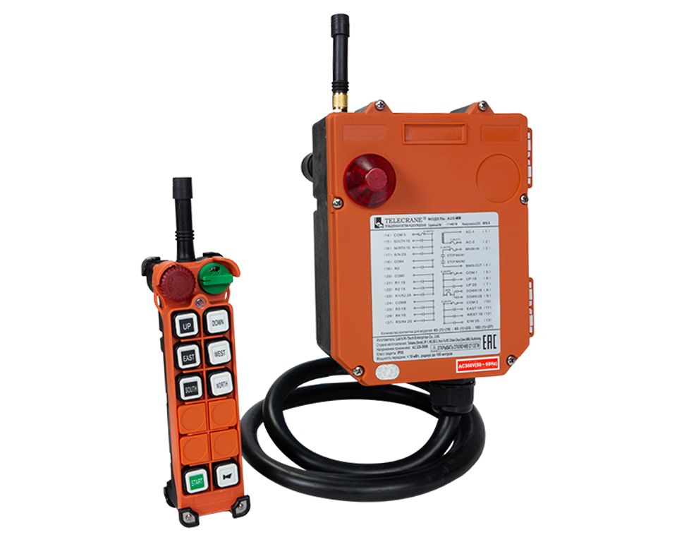 Радиоуправление "Telecrane" А25-6D, комплект (Пульт 6 кнопок управления + старт, стоп, звонок, 2 скорости + Приемник) (Питание приемника: 220/380 В) с функцией звукового сигнала Наличие голографических наклеек подтверждающих подлинность товара. Товар укомплектован оригинальным паспортом на русском языке с печатью. Поставка и использование только с соблюдением разрешенных радиочастот в РФ. Шильды-стикеры на русском языке. Дистанция управления до 100 метров. Низкая цена для оснащения радиоуправлением электрических лебедок, цепных и канатных электроталей, а также кран-балок. Низкое энергопотребление передатчика (2 батарейки размера АА срок работы до 4 месяцев). Стандартное питание приемника: 220-380 V, возможно исполнение приемника на 12-24 V Диапазон температур -35°С ~ +85°С. Класс электрозащиты устройства IP65. Лёгкое программирование совместимое с Microsoft Windows для настройки по потребностям заказчика. Корпус изготовлен из прочного фибер-гласа.