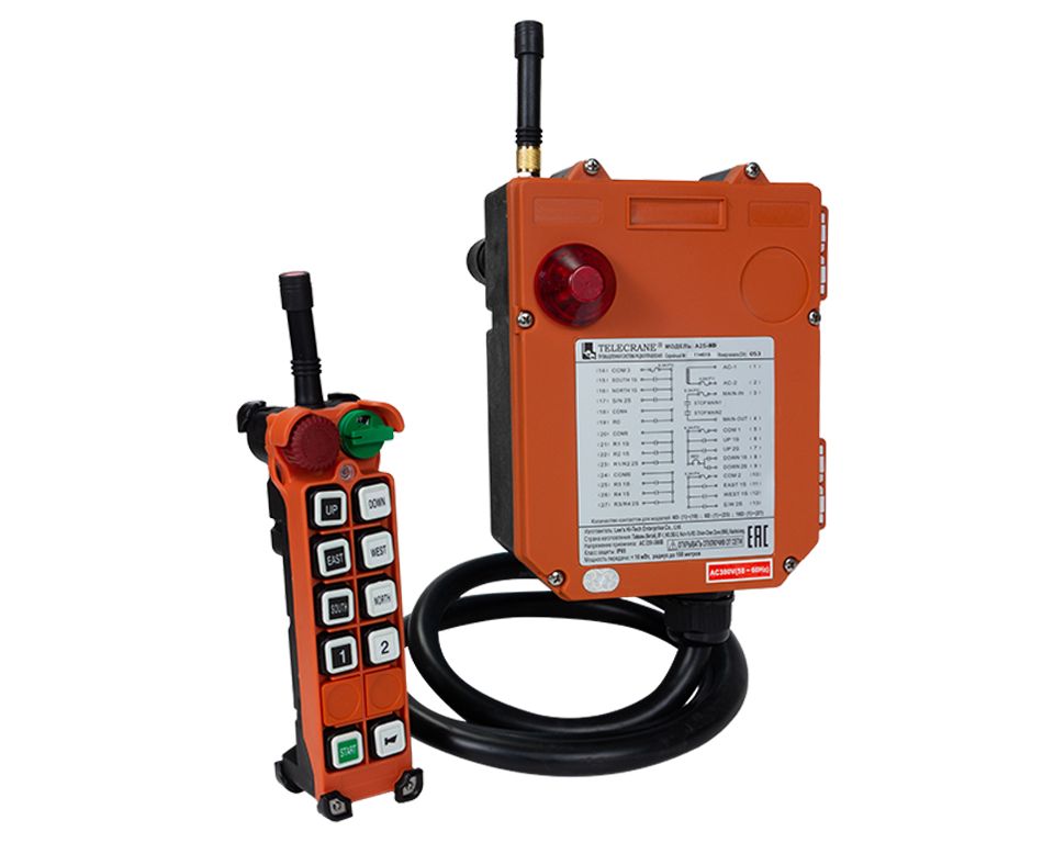 Радиоуправление "Telecrane" А25-8D, комплект (Пульт 8 кнопок, 2 скорости + Приемник) (Питание приемника: 220/380 В) с функцией звукового сигнала Наличие голографических наклеек подтверждающих подлинность товара. Товар укомплектован оригинальным паспортом на русском языке с печатью.