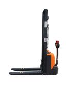 Данный штабелер легко управляется с помощью многофункциональной ручки управления. Отличительной чертой данной модели являются его размеры. Его корпус значительно тоньше, чем у полностью самоходных моделей. Ручка управления перенесена из центральной части в левую, поэтому оператор может с легкостью управлять им стоя сбоку. Это позволяет применять его в более узких проходах, где работа самоходного штабелера невозможна.