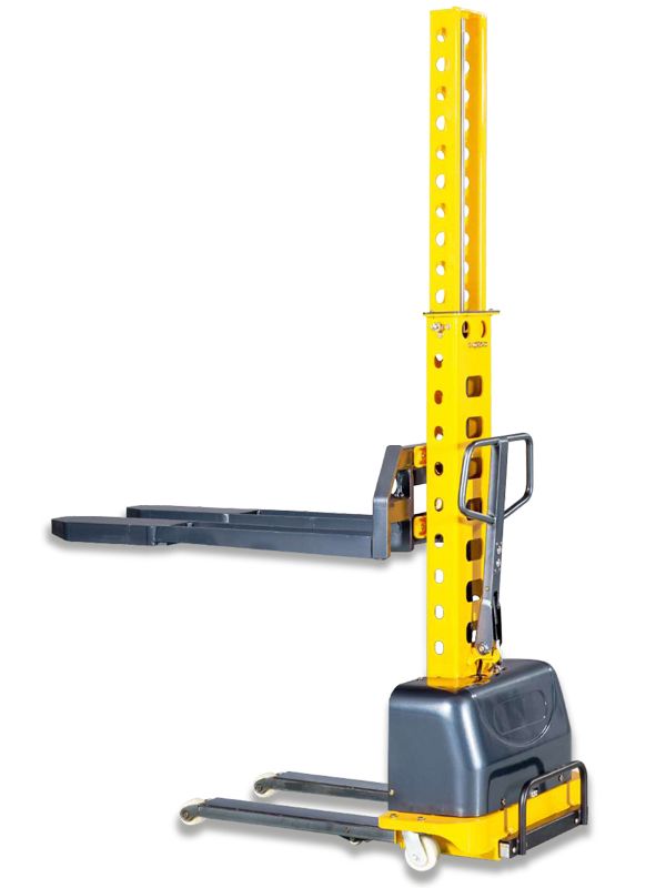 для укладки паллет внутри кузова. Такая необходимость может возникнуть в случае отсутствия у вашего склада рампы или другой возможности штабелеру попасть внутрь кузова. Специально для эффективной работы внутри фуры максимальная высота штабелера при поднятых вилах составляет 2140 мм для модификации с высотой подъема 1 метр. В среднем высота кузова полуприцепа составляет 2650 мм. Данная модификация поднимает груз весом до 500 кг, на высоту 1.3 метра.Основные характеристики: