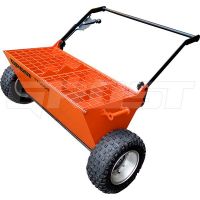 Удобная и простая конструкция. Легкая в управлении за счет увеличенного диаметра колес. Удобный дозатор. Тележка имеет удобную конструкцию, включая резцы для разрыва мешков со смесью, легкий вес 52 кг и большие колеса для хорошей проходимости. Масса загрузки составляет 150 кг, рабочая ширина равна 1000 мм. Тележка производится в России.