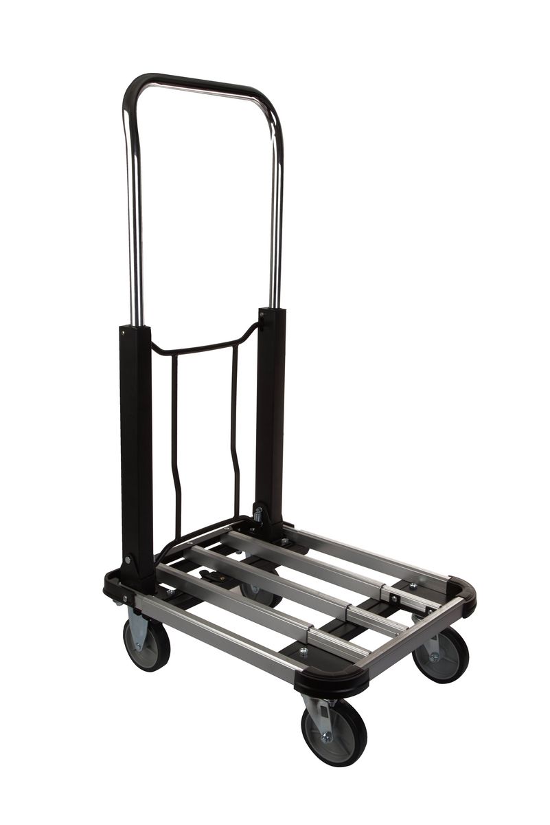 Тележка платформенная алюминиевая AP150, г/п 150кг, размер ДхШхВ 710х420х950мм, диаметр колеса 100мм, вес 7.3кг. Незаменима для экономии места при хранении Складная ручка для компактного хранения и удобства переноски; Легкая алюминиевая конструкция; Не повреждает стены благодаря уголкам из пластика по углам тележки; 2 поворотных колеса и 2 не поворотных из полиамида; Телескопическая регулировка длинны платформы и ручки. Технические характеристики Грузоподъемность, кг. 150 Размер платформы, мм 500х420 Размер в разложенном положении, мм 710х420 Колеса, мм ф100 Размер в упаковке, мм 540х240х430 Габаритный размер, мм 710х420х950 Вес, кг. 7,3